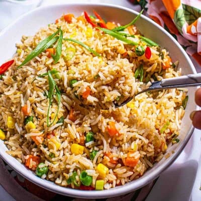 | Chicken, lamb, shrimp, and vegetables cooked in basmati rice... | ||