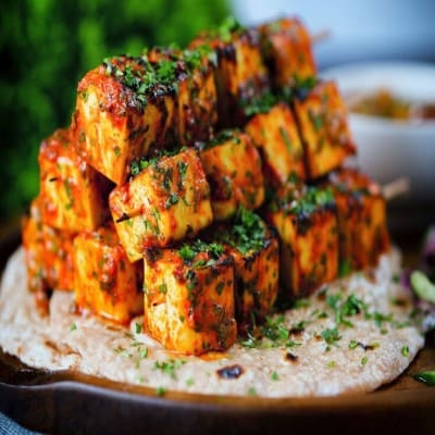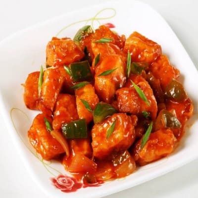| Home-made cheese cubes cooked in tomatoes and cream sauce. | ||