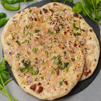 | Spicy naan filled with green chillis spices and clintro. | ||