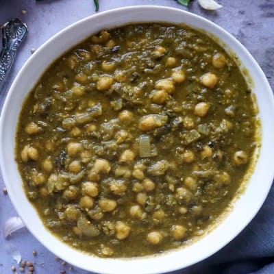 | Chickpeas and spinach cooked in tomatoes and cream sauce. | ||