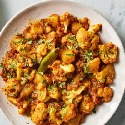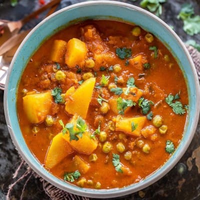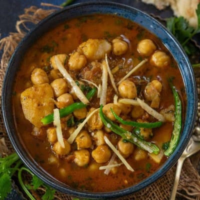 | Chickpeas and potatoes prepared North Indian style. | ||