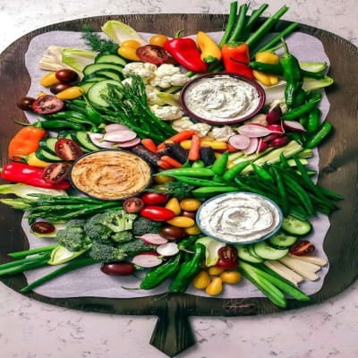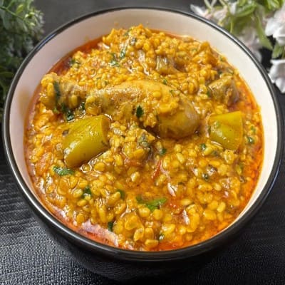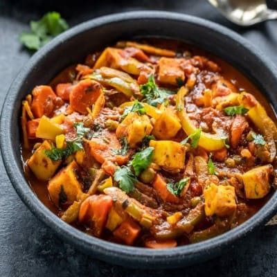 | Fresh vegetables cooked with green peppers, tomatoes and oni... | ||
