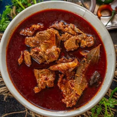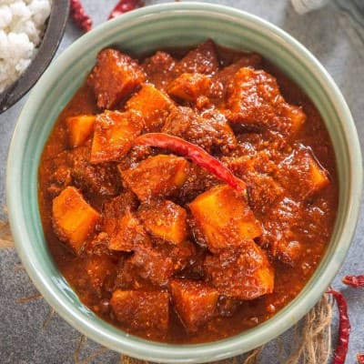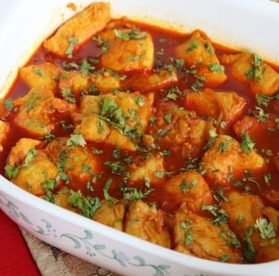 | Fish cooked with potatoes in a hot tangy sauce. | ||
