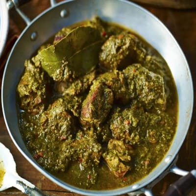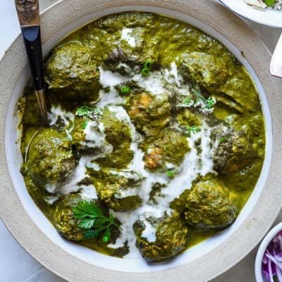 | Mildly spiced spinach cooked with vegetable balls. | ||