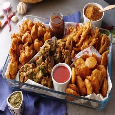| A sampling appetizers including chicken pakora and paneer pa... | ||