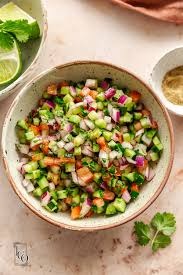 | Fresh chopped cucumbers, onions and tomatoes with spices. | ||