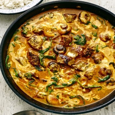 | Tender mushrooms cooked with spinach and cream sauce. | ||